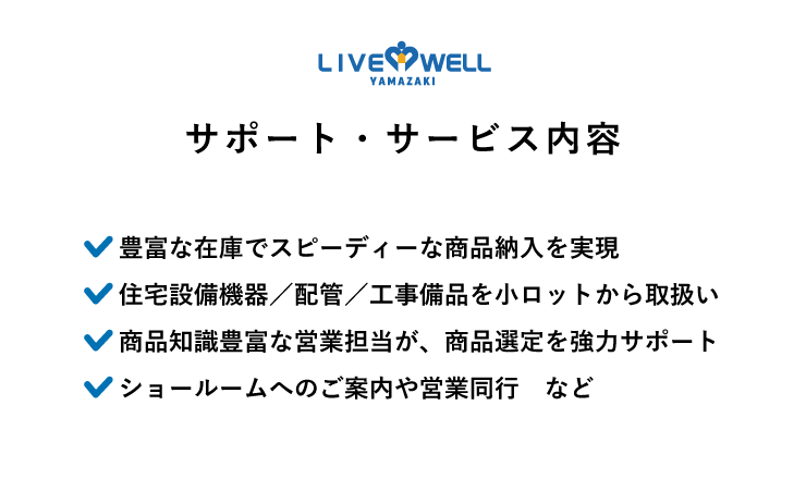 南大阪 奈良 和歌山で事業を展開し今年で創業72年。水まわり、住宅設備、配管の卸売 株式会社リブウェルヤマザキ